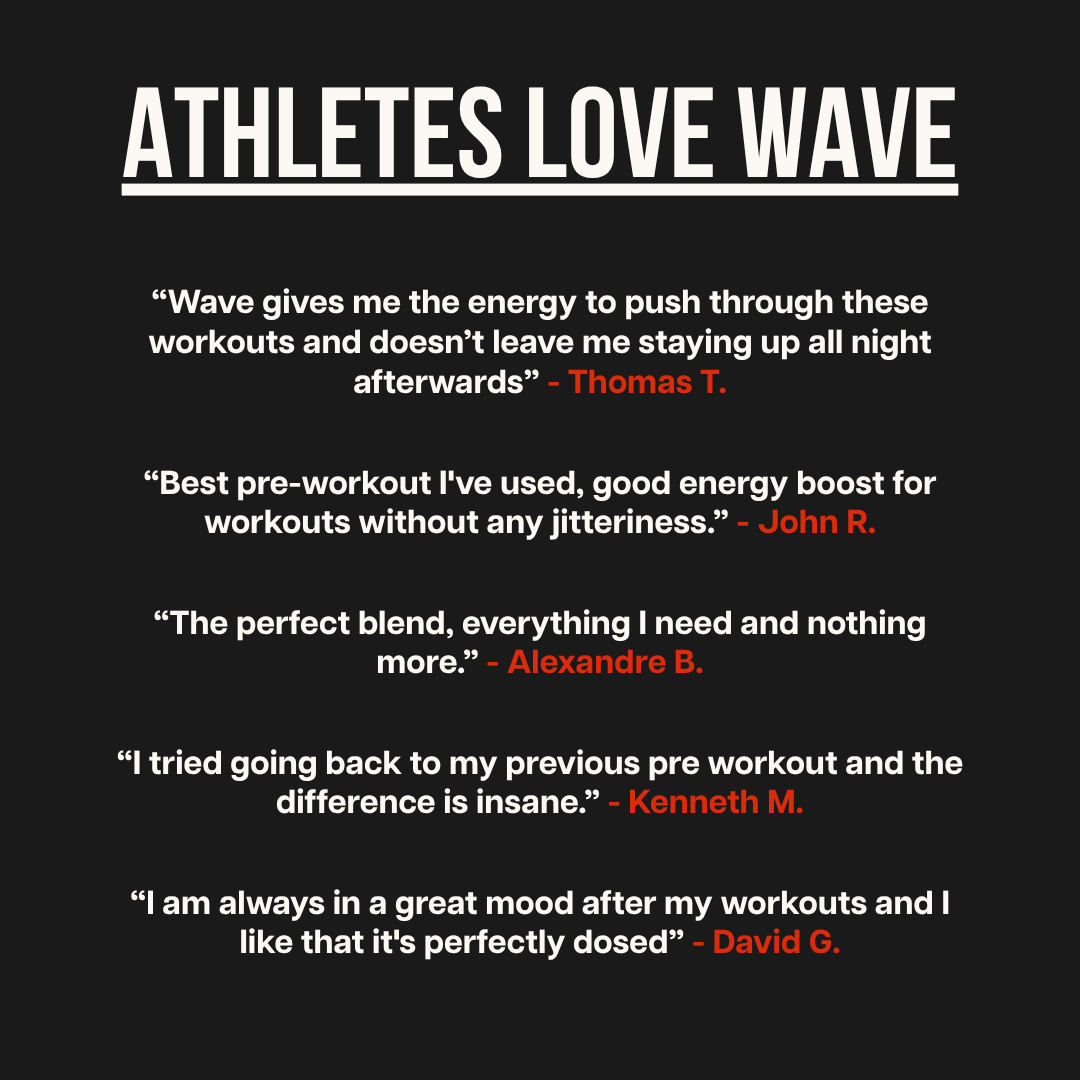 If you are someone who wants real results from their pre-workout, a diverse formula that doesn't cut corners, and sustainable energy and cognitive enhancement - try Wave.